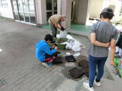 園芸部の活動の様子です。今日はパンジーなどの種まきを行いました。