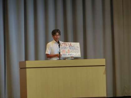 校長先生のお話です。夏休み中校長先生自身が能登半島地震の被災地でボランティア活動を行い、その時の経験をもとにお話をされました。