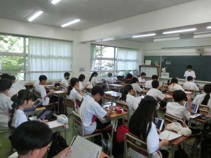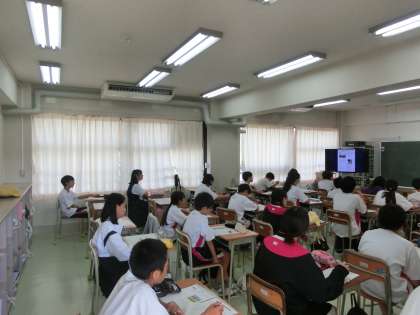 1年生は本日の6時間目に移動教室の事前学習の発表会をクラスごとに行いました。
