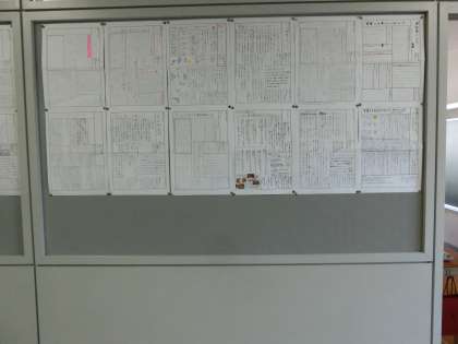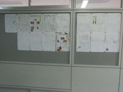 北校舎2階の廊下には2年生の職業調べ新聞が貼りだされました。こちらは2年A組です。