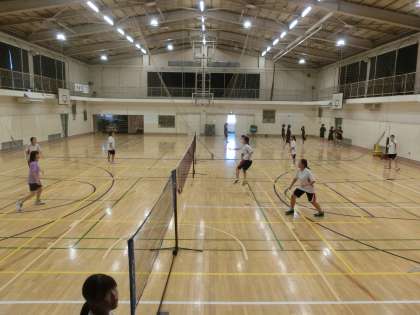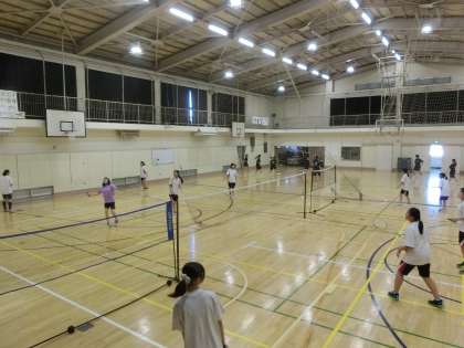 明日からテスト1週間前になるため大会前などの部活動を除いて活動を行いません。今日はテスト前最後の活動となります。こちらはバドミントン部です。