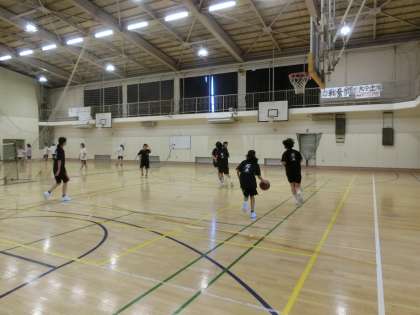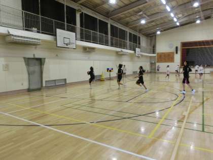 女子バスケットボール部です。いつもより人数が少ないのは、区陸の練習に参加している生徒がいるからのようです。
