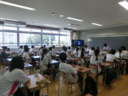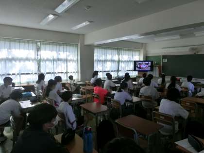 朝礼の後、区陸の紹介動画と表彰の様子を配信しました。