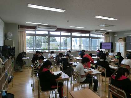 今日(9月25日)と明日(9月26日)は定期テストです。本日は英語、社会、理科を行います。