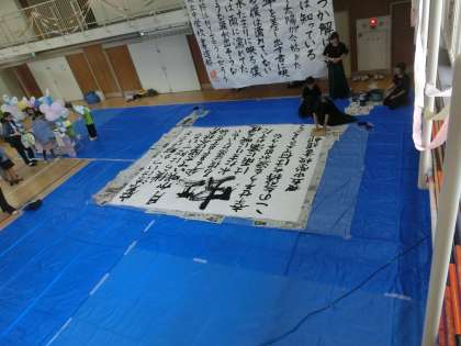 書道部です。今年も圧巻の書道パフォーマンスを披露してくれました。