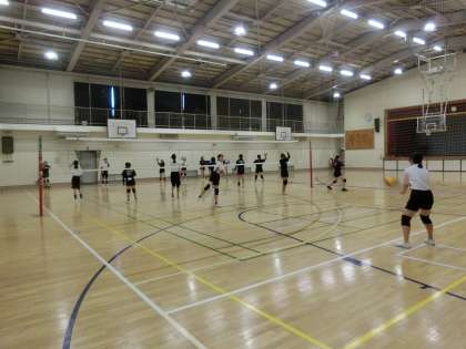 女子バレーボール部です。今季も都大会出場にむけて練習に励んでいます。