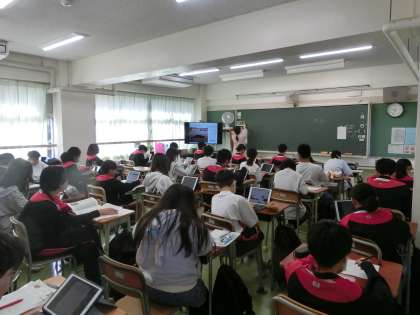 1時間目は道徳の授業です。こちらは1年生の様子です。