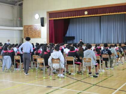 2年生は職場体験学習に向けて全体学活を行いました。来週に事前訪問を行い23日から各事業所で体験が始まります。