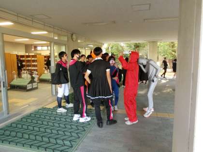 今日は生徒会企画のパフォーマンスデー(ハロウィーン)です。ピロティで仮装を楽しみました。