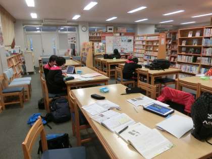 食事ができるまでメディアセンターで学習しています。