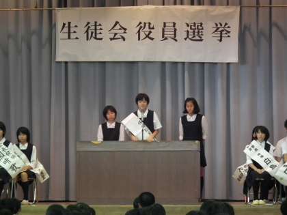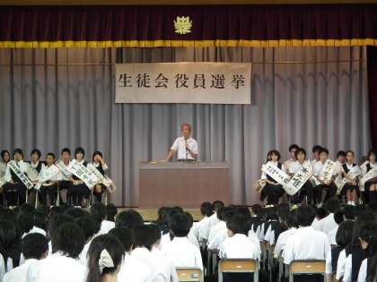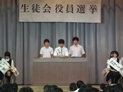 9月21日(金) 生徒会選挙のための立会演説会が開かれました。生徒会の執行委員や、各種委員長の立候補者と応援者達が、演説しました。