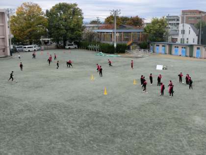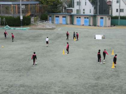 3年生の保健体育の授業ではサッカーが始まりました。今日は基礎練習を行いました。