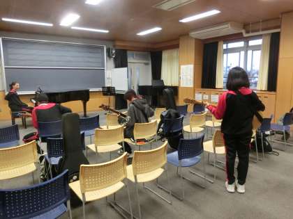 軽音楽部の活動の様子です。12月のコンサートに向けて練習に励んでいます。