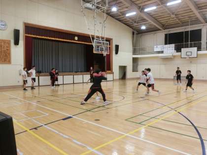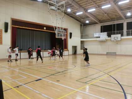 面談期間中の放課後の部活動は、開始・終了時刻を早めて活動しております。こちらは男子バスケットボール部の活動です。