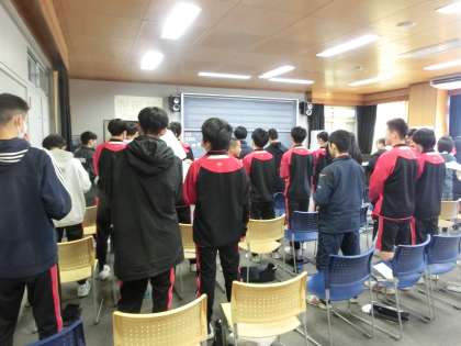 3年生の音楽の授業です。合唱コンクールの自由曲を全体で合わせました。