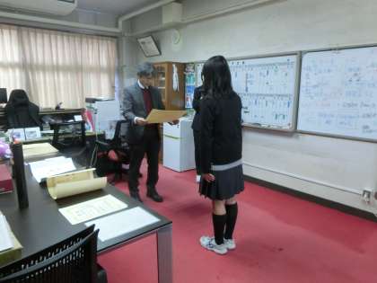 税の標語に応募した1年生が入選し、東京国税局関税会より表彰されました。