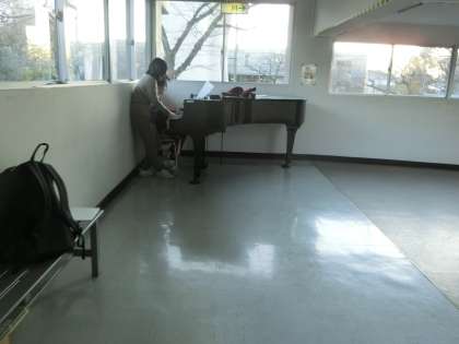 廊下に置かれている卒業生が寄贈してくださったグランドピアノ。放課後音楽の先生が合唱コンクールの伴奏者に個人指導をしていました。素敵な音色が聴こえてきます。