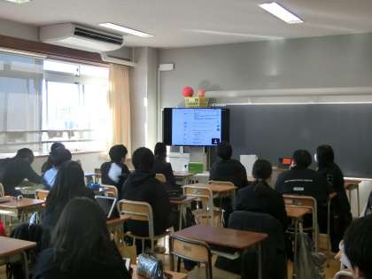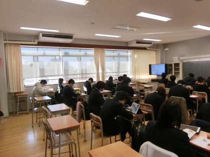 3年生の総合的な学習の時間では、進路指導主任の先生による、出願、入試、発表、手続きなどの入試に関する細かな日程と注意事項についての説明を、全クラスにライブで配信しました。