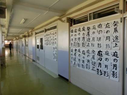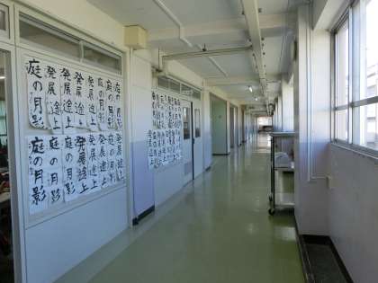 校内書初め展が始まりました。こちらは1年A組B組です。