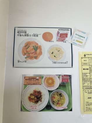 今日は「学び舎連携給食」の日です。同じ学び舎に属する小中学校の児童生徒が考えた献立を3校で実施する予定です。