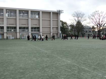 揺れが収まったことを想定し校庭へ避難しました。