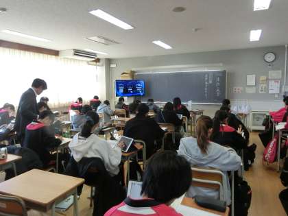 2年生の国語の授業です。漢詩でうたわれている風景をタブレットを使って調べてみました。