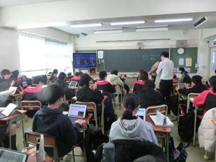 情報教育です。1年の技術の授業ではタブレットを使って目的に応じた情報の活用方法や必要な情報の収集方法について学習しました。
