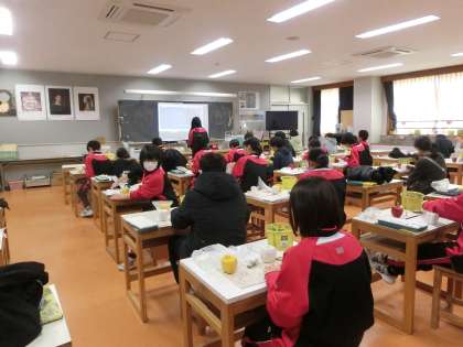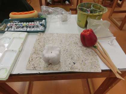 1年生の美術の授業です。紙粘土を使ってパプリカの制作を行っています。