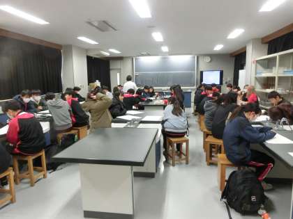 生徒会執行部、各種委員会委員長、クラス代表で構成される代表委員会です。校内でのスマートフォンの在り方についてクラス討議の結果を持ち寄りました。