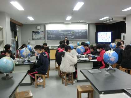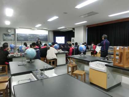 3年生の理科の研究授業です。太陽の日周運動を観察することで地域によって季節が異なることについて学習しました。