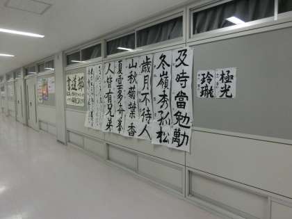 書道部の作品が理科室前に展示されています。さすが書道部、どれも秀作です。