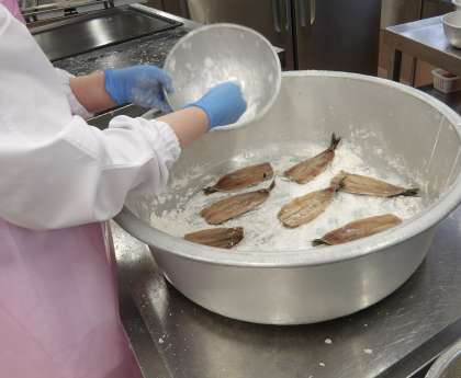 邪気を払うとされるイワシを蒲焼きにしました。下味をつけたイワシに粉をつけて揚げ、タレをかけてご飯の上にのせました。ていねいに粉をつけるとタレが絡みやすくなり美味しく食べられます。