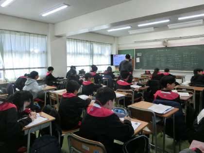 1年生の保健体育の授業です。今日は体育理論で様々なスポーツを取り上げました。