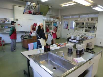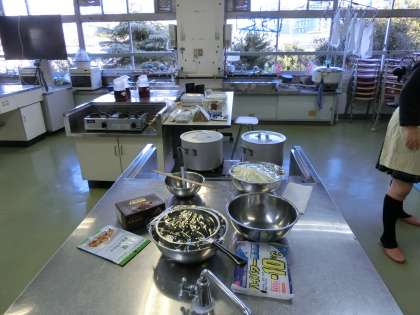 今日は今月の笑顔食堂です。早くから笑顔咲く街キッチンの皆さんに卒業生が加わり準備をしてくれました。