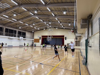 体育館では男女バスケ部が練習していました。