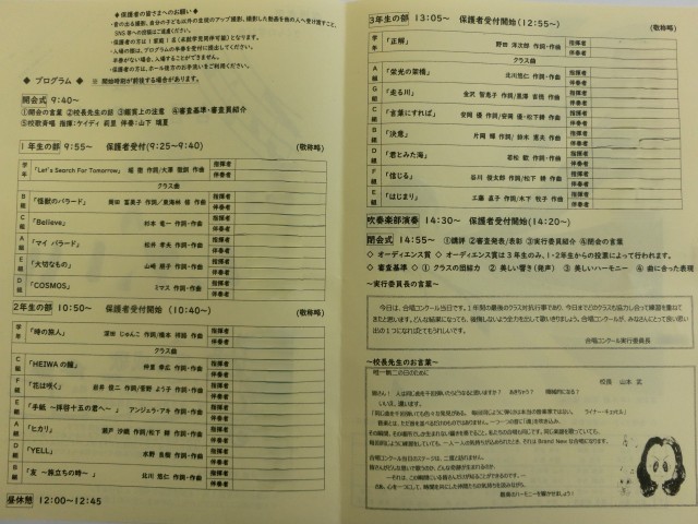 ご来場の保護者の皆様、プログラムをご持参ください。