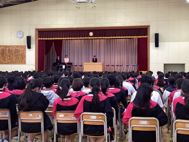 生徒会長や各委員長が前期の活動方針を発表しました。