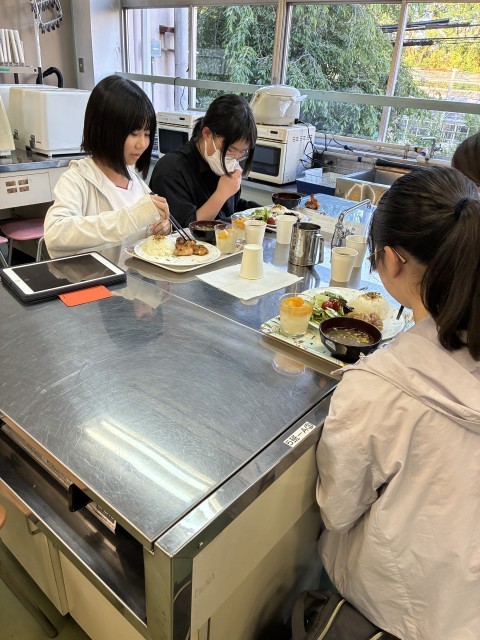 みそ汁、デザートに今回は特別、園芸部作じゃがいもを使ったポテトがつきました。