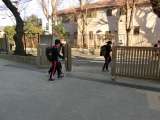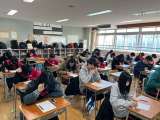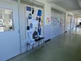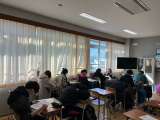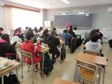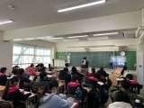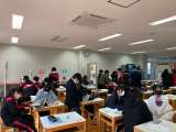 2年生の家庭科の授業で取り組んできたリメイクバッグです。完成した作品を調理室前に...