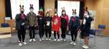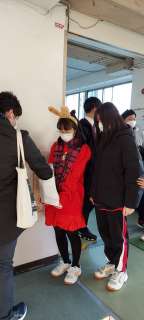 生徒会企画のクリスマスのパフォーマンス。「靴下を探せ」校内の40か所に写真のよう...