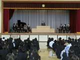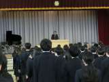 校長先生のお話の後は生徒指導部長の話、校歌斉唱を行いました。