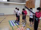2年生、教科「日本語」での浴衣の着付け。 地域の方々に来ていただき、教わりました...