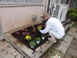 桜丘中の環境美化のために、緑花フラワースクールボランティアの方が、きれいな花を植...