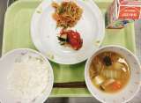 【献立】 ・ねぎ塩豚丼 ・ハムとひじきの彩りサラダ ・味噌けんちん ・牛乳 【主...