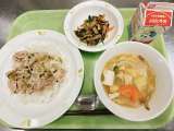 【献立】 ・カレーピラフ きのこクリームソース ・じゃこときゃべつのサラダ ・小...