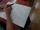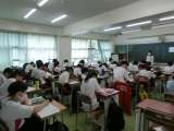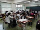 1年生の書写(硬筆)の授業です。お手本と画像の注意事項を確認しながら真剣に取り組...