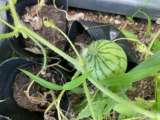 グリーカーテン下のプランターに”すいか”がなりました。まだ小さいですがこれから大...