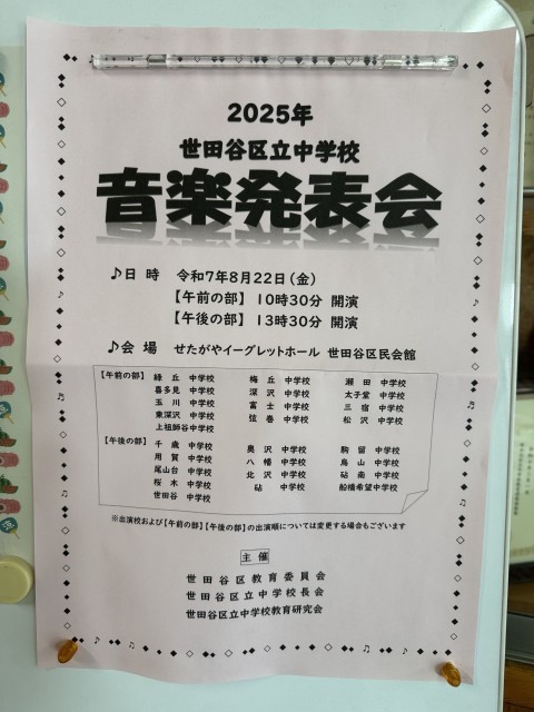 吹奏楽部が、世田谷区立中学校 音楽発表会に参加しました。