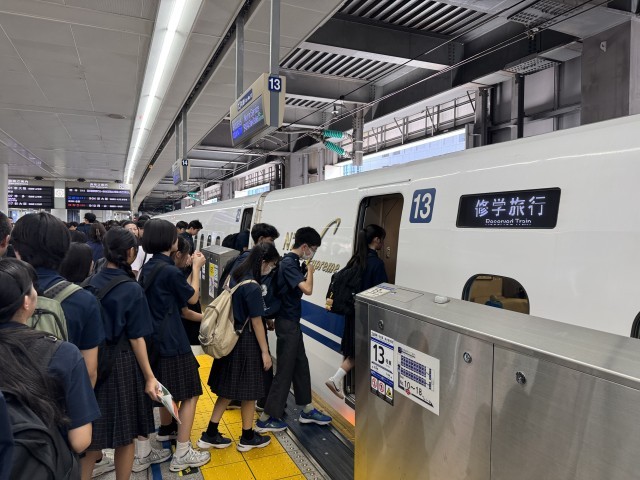 修学旅行専用集団列車のぞみ315は、予定通りに品川駅を出発しました。車内で昼食を食べて、11時6分に京都駅着です。