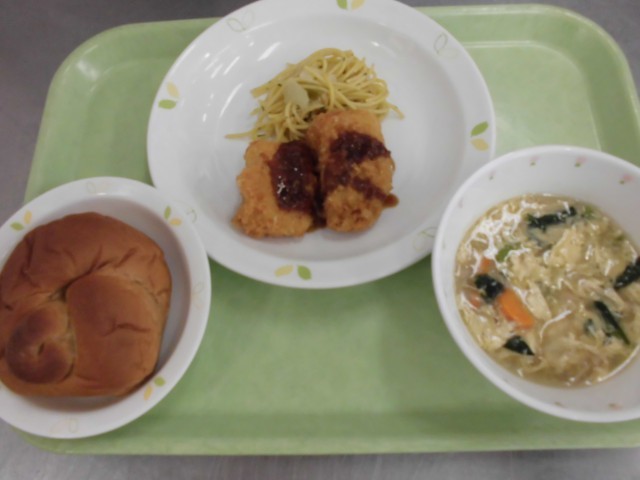 イカにはコレステロール低下作用、視力回復作用のあるタウリンや、脳神経の働きを助けるナイアシン、味覚を正常にする亜鉛などが豊富に含まれています。また、良質なたんぱく質が多く含まれ、資質が少なく低カロリーです。副菜のペペロンチーノは今年卒業した生徒が給食でこんなの食べたい!というつぶやきを採用しました。